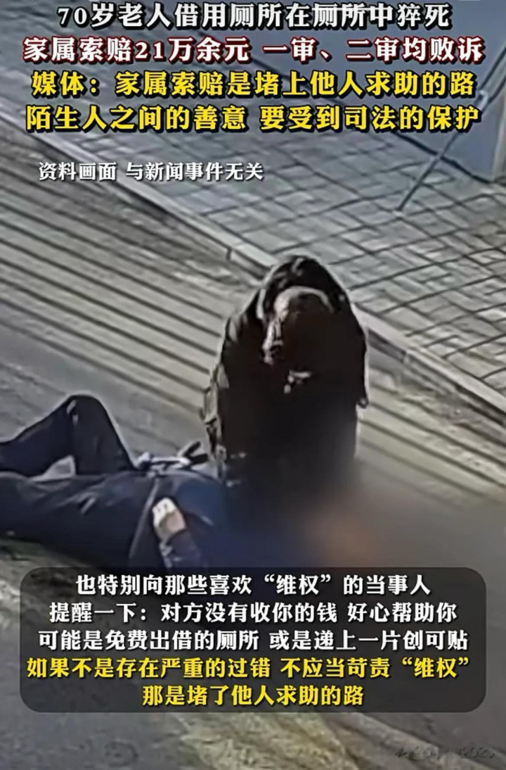也特别向那些喜欢“维权”的当事人提醒一下:对方没有收你的钱 ,好心帮助你,可能是免费出借的厕所 ,或是递上一片创可贴如果不是存在严重的过错 ,不应当苛责“维权”,那是堵了他人求助的路!